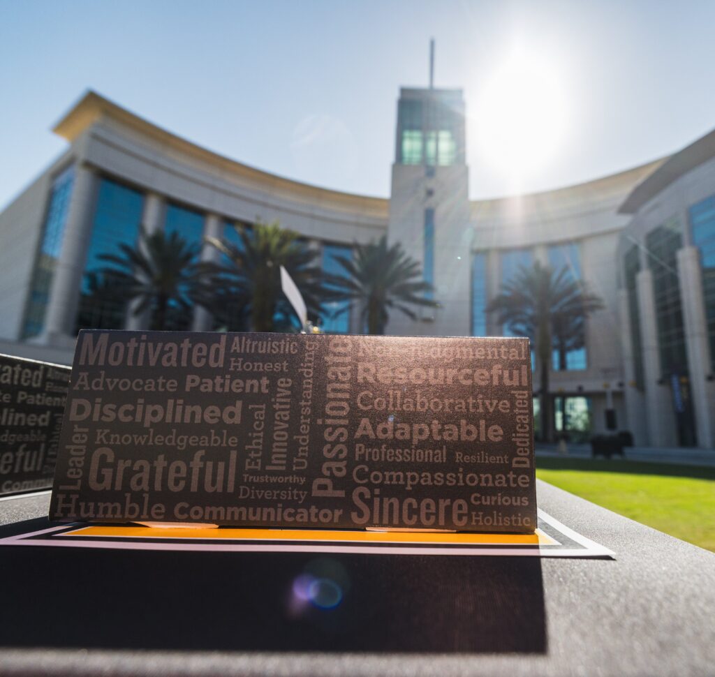She writes those traits on a blackboard, which stays in the College of Medicine lobby as a contract between students, their faculty, patients and community. Class of 2026 students designed decorative boxes to hold their Match Day envelopes. The boxes contained their Good Doctor words from four years ago, including grateful, humble, compassionate and resourceful.