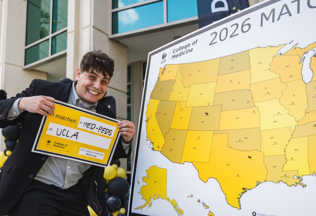 The two were among 108 UCF students who matched into residencies as part of National Match Day. UCF earned a 99% match placement rate, compared with a national average of 93.5%. Students matched into specialties that include internal and family medicine, pediatrics, psychiatry, radiology, surgery, pathology and emergency medicine. Forty-six of the 108 will do some or all their training in Florida.