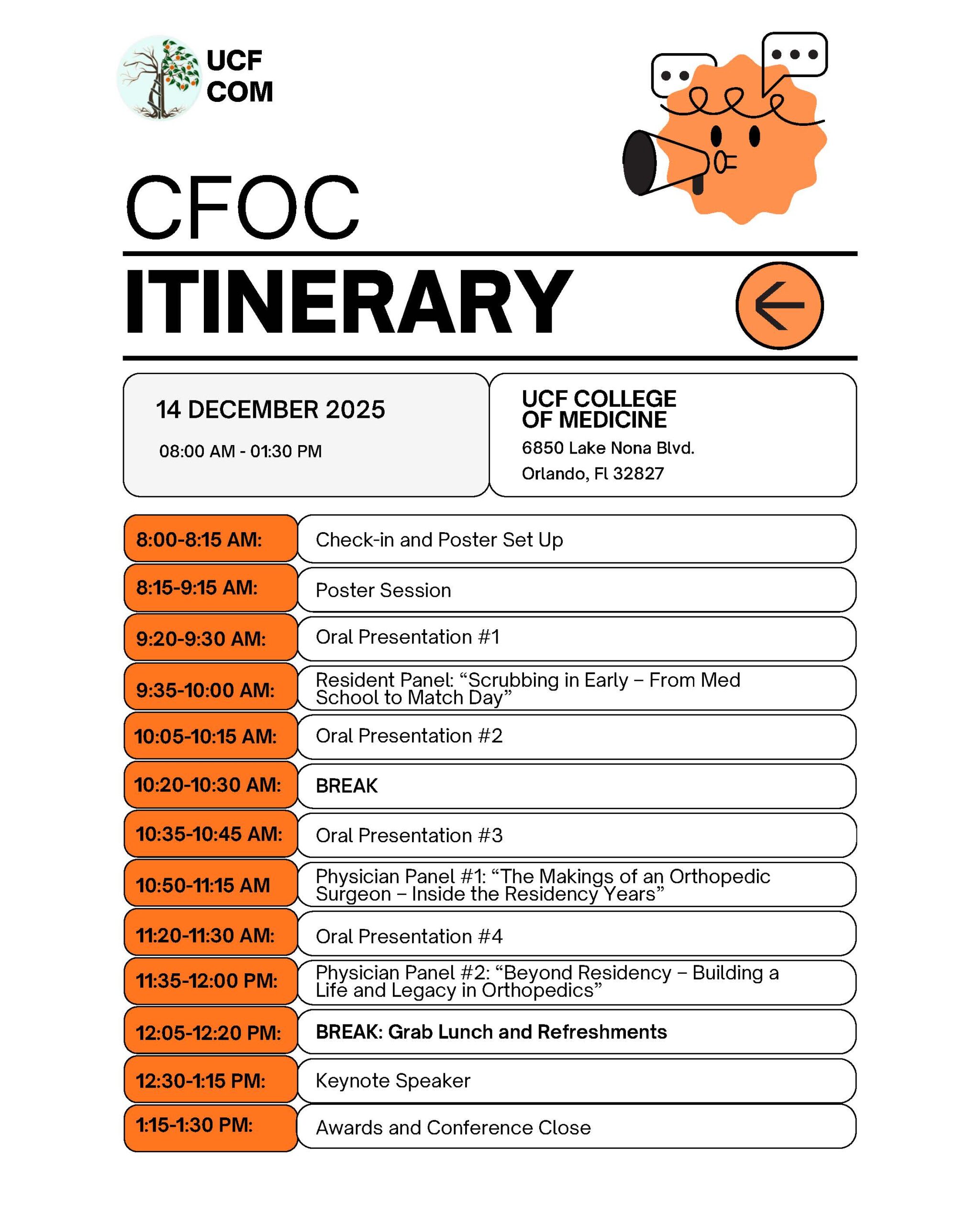 The mission of the CFOC is to serve as a symposium for the brilliant minds behind novel orthopedic research in Central Florida.